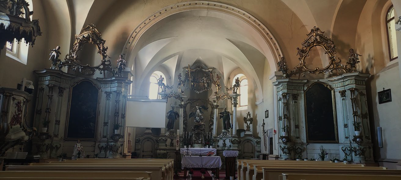 Biserica se compune dintr-un cor poligonal, sală și turn în fațada principală. Accesul are loc prin turn, în vestibulul de sub tribuna vestică. Alcătuit din trei travee, interiorul navei este ritmat prin pile masive de zidărie ce susțin bolta semicilindrică cu penetrații,