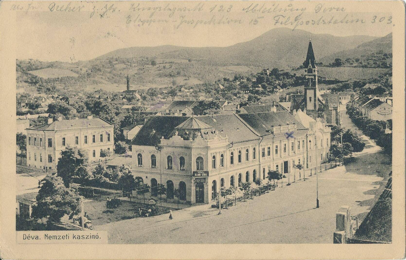Construcția S+P+E aflată în Piața Unirii, nr. 9, monument istoric la poziția 163/ cod HD-II-m-B-03233, a fost ridicată între anii 1847-1856 și extinsă în anul 1903, funcționând ca sediu al Casinei Naționale Maghiare din Deva (Dévai Nemzeti Kaszinó). Înființată în anul 1842, în spiritul mișcărilor naționale din prima jumătate a secolului al XIX-lea, scopul asociației era cultural și membri puteau fi toți cetățenii maghiari din Deva și județul Hunedoara, fiind membri de drept toți ofițerii din Regimentul de honvezi și cei de jandarmi din Garnizoana Deva. Casina Națională Maghiară din Deva a fost deschisă tuturor intelectualilor din județul Hunedoara, dar limba folosită în cadrul dezbaterilor era cea maghiară. Aici au activat și câțiva dintre cei 24 de intelectuali români din județul Hunedoara cuprinși în lista întocmită în anul 1849, la cererea organelor centrale din Viena. Din publicaţia „Dévai Nemzeti Kaszinó monográfiája” scrisă de László Zsigmond în 1911 la Bârcea Mică şi publicată la Deva de Laufer Vilmos, aflăm că spaţiile construite de la parter au fost închiriate către terţi, iar cele de la etaj folosite în scopuri proprii culturale şi de loisir; în anul 1856 au avut loc 17 spectacole de teatru; în sala mare se ţineau şi şedinţele Consiliului Judeţean. În anul 1856 s-a înfiinţat şi o bibliotecă, volumele se puteau împrumuta de către toţi locuitorii oraşului, contra cost; în anul 1910 biblioteca avea câteva mii de volume şi o colecţie variată de reviste. În sălile Casinei erau organizate spectacole de teatru şi de operetă, cu trupe profesioniste invitate, exista şi o trupă locală de amatori.