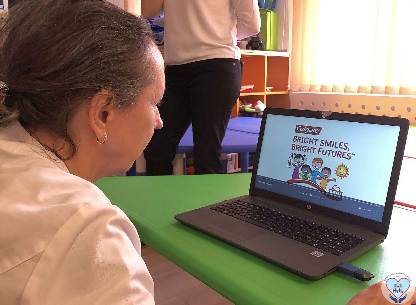 Și ca să nu uite ce au învățat despre îngrijirea dinților, stomatologul le-a oferit copiilor planșe de colorat cu fructe și legume benefice pentru sănătatea orală, dar și pliante cu ilustrații, utile părinților care își încurajează copiii să transforme spălatul pe dinți într-o experiență pozitivă. (Fotografiile cu minori au fost realizate cu acordul scris al părinților)