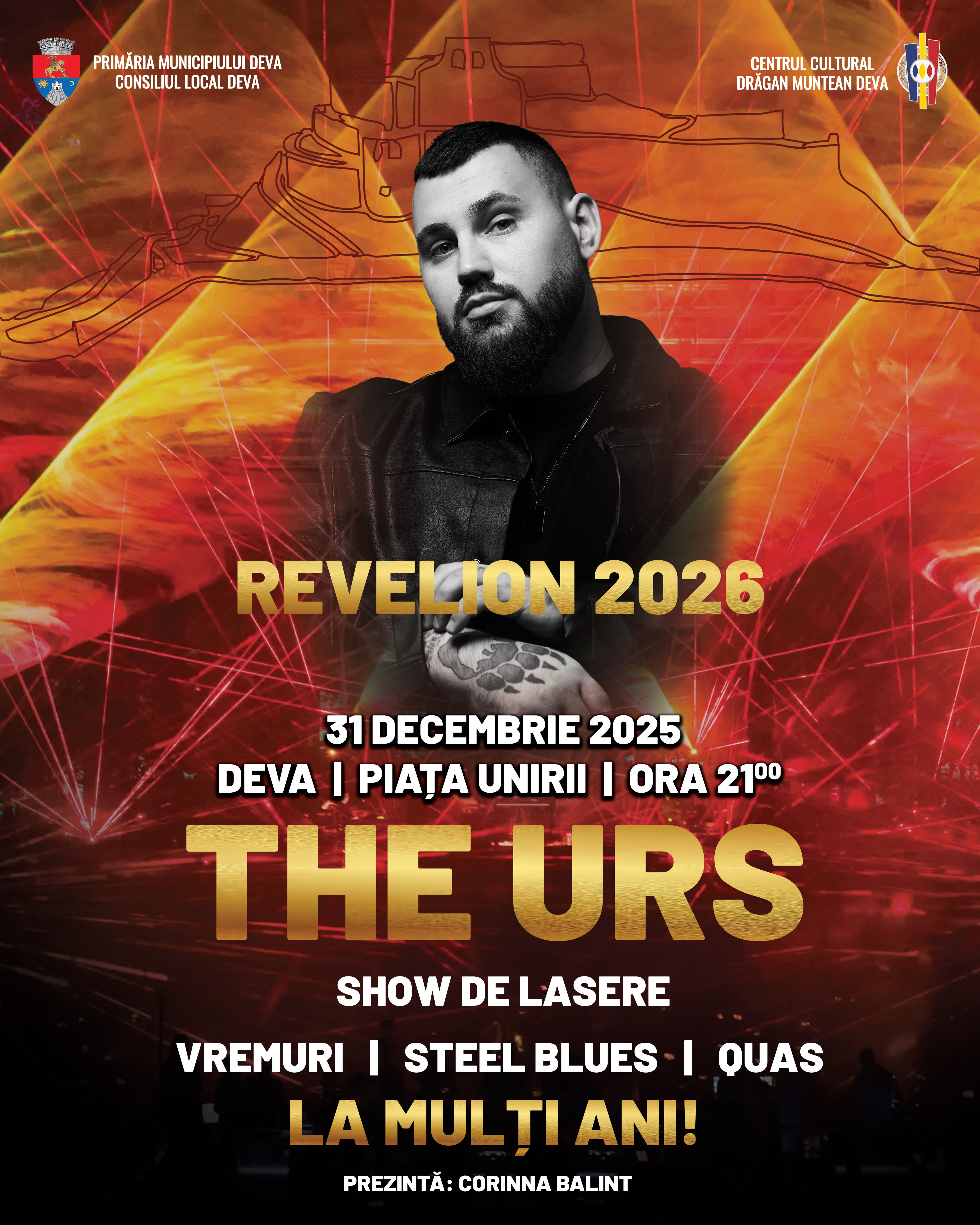 Primăria Municipiului Deva și Centrul Cultural „Drăgan Muntean” îi invită pe toți devenii, dar și pe oaspeții orașului, să pășească în Noul An 2026 într-o atmosferă vibrantă, plină de lumină și speranță, miercuri, 31 decembrie 2025, începând cu