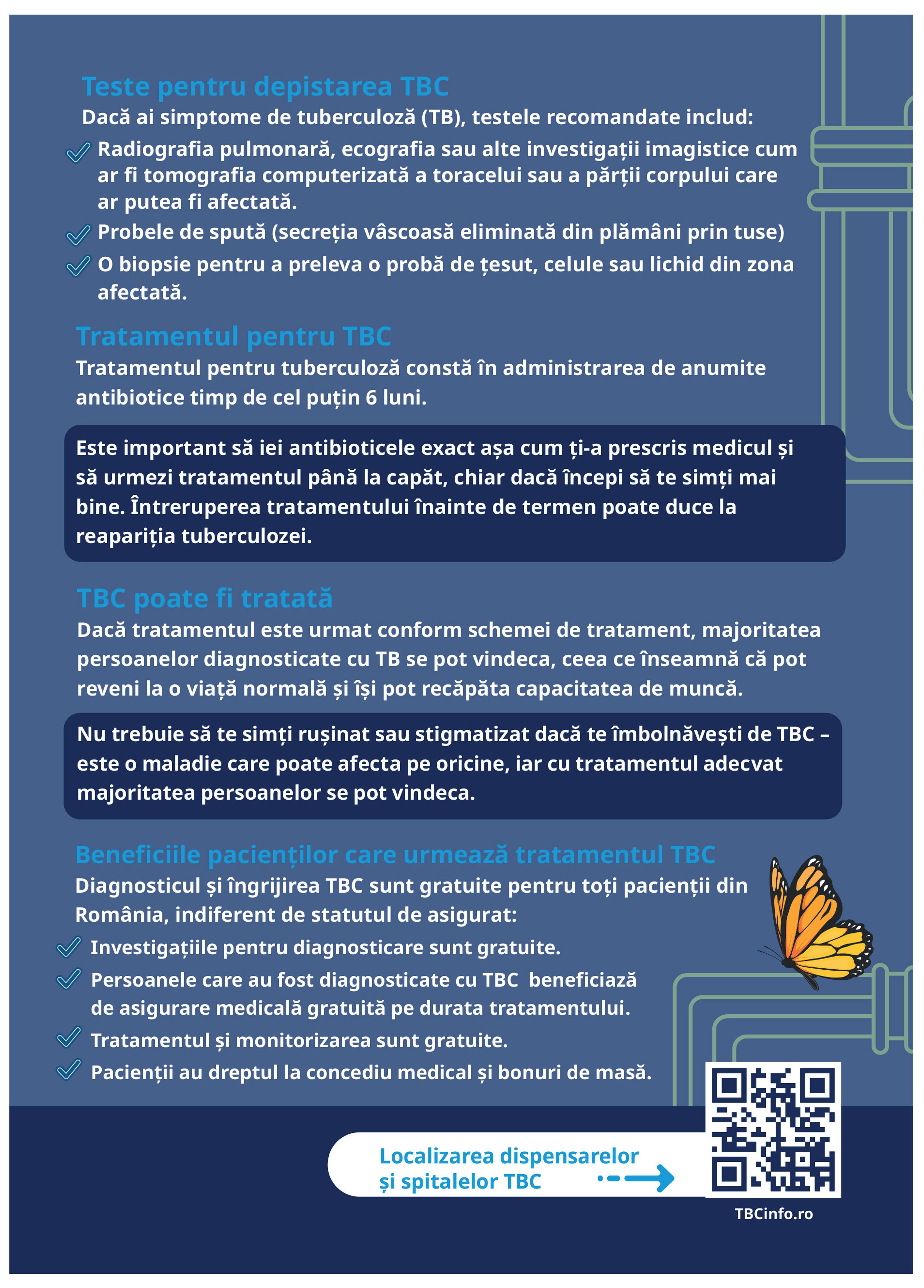 DE REȚINUT! În România, accesul în spitalele TBC, investigațiile, diagnosticarea și tratamentul tuberculozei sunt GRATUITE – indiferent de statutul de asigurat al persoanei bolnave.